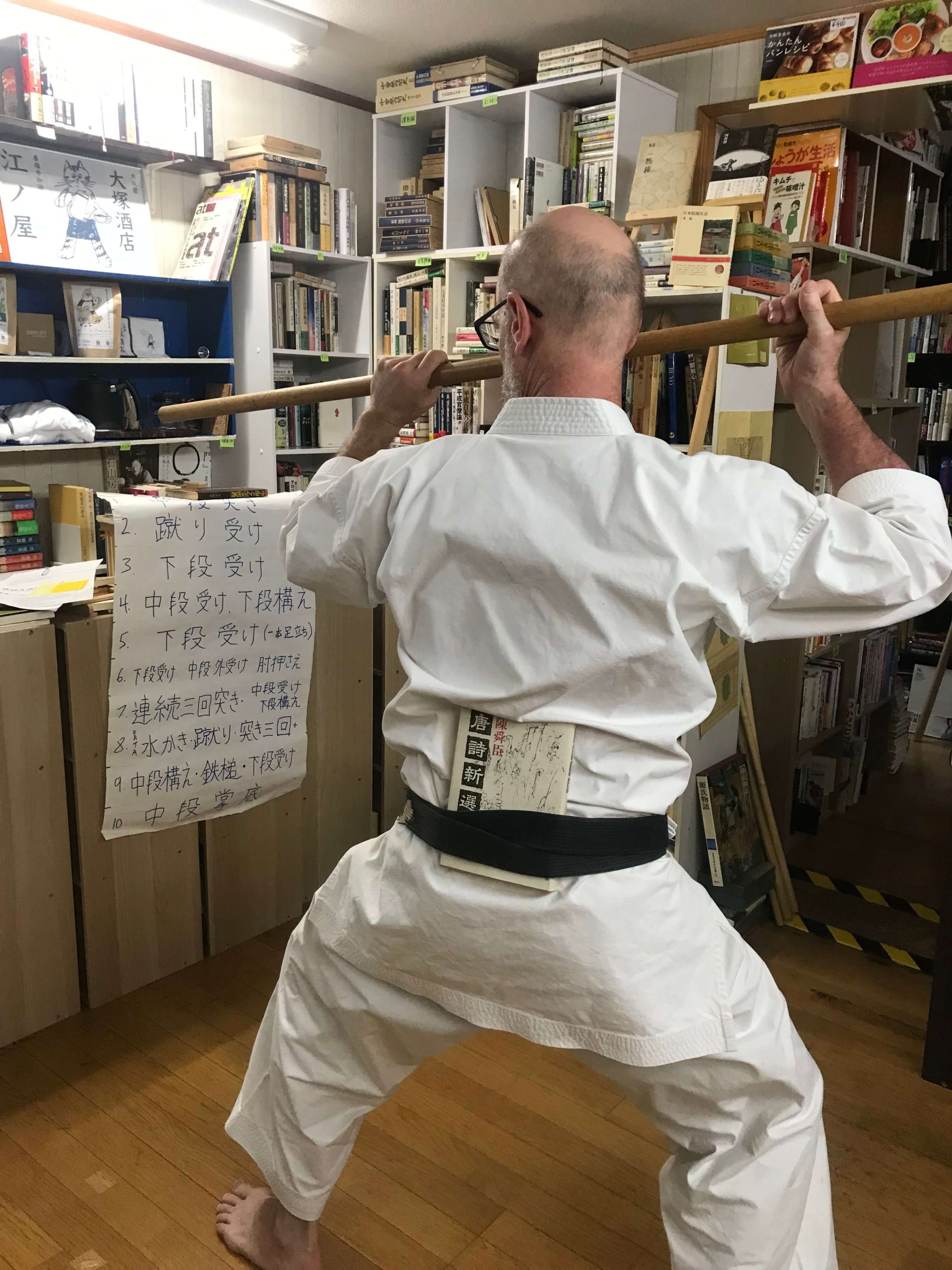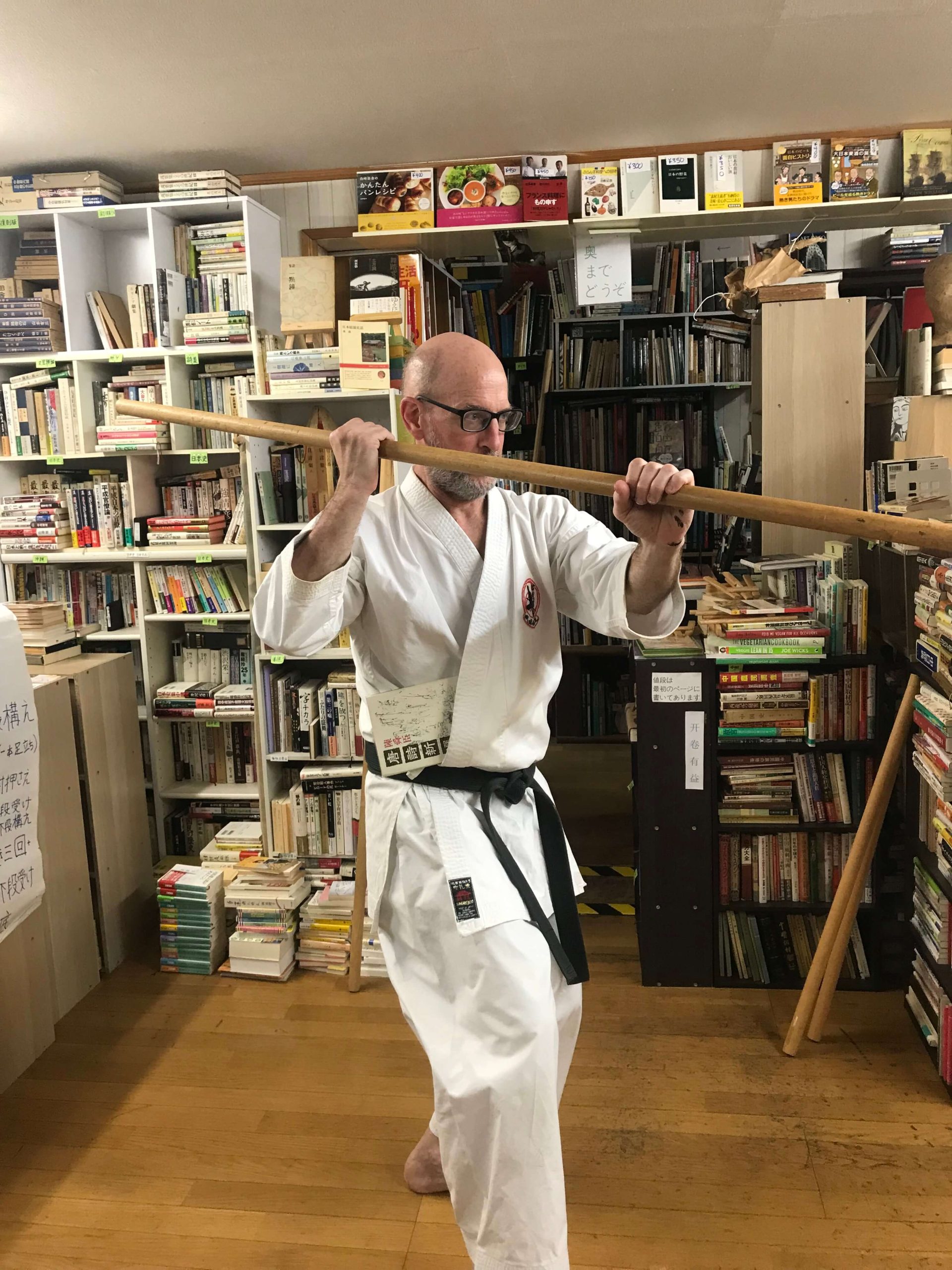 We offer martial arts classes inside the shop (moving the bookshelves aside as well as in other locations in Tokyo.