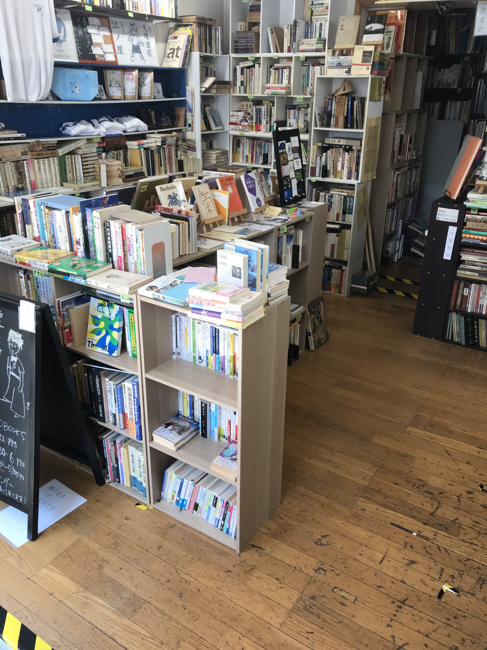 We offer martial arts classes inside the shop (moving the bookshelves aside as well as in other locations in Tokyo.